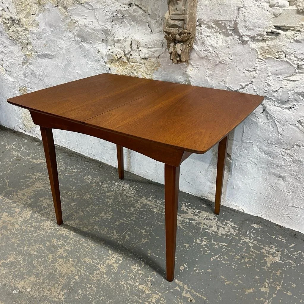 Mid Century Compact dining table in teak and teak veneer, this table has the middle leaf missing which is reflected in the price.