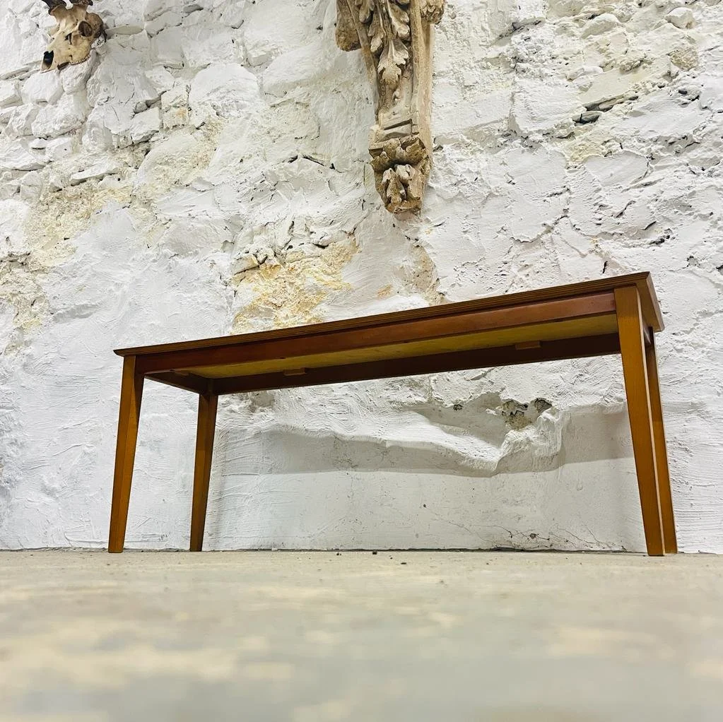 Mid Century Long John Coffee table, with teak veneered top