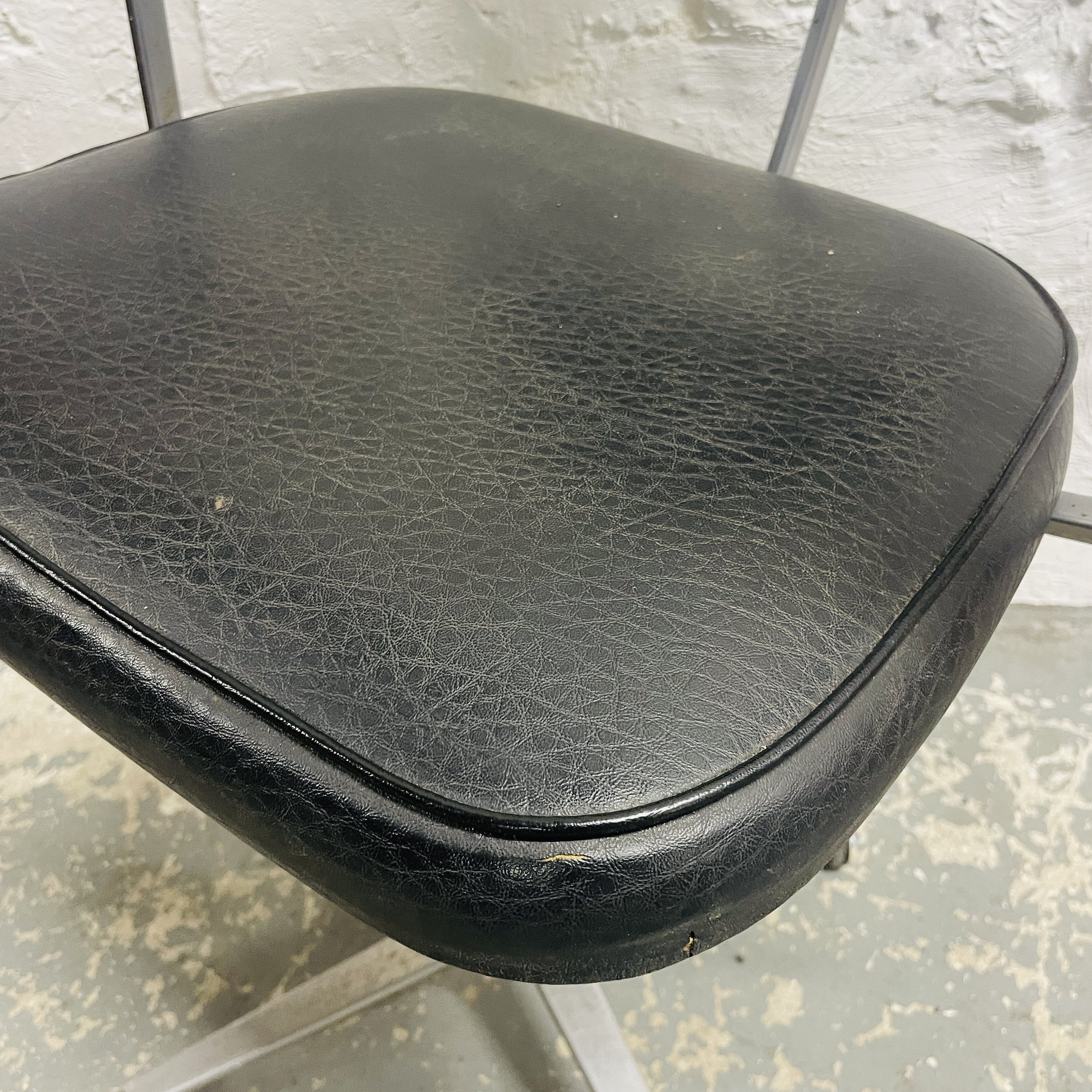 Vintage Sewing Machinist Chair With Aluminium Legs and Castors, Original Black Vinyl which has some ware, which can be seen in the photos, can be reupholstered on request.